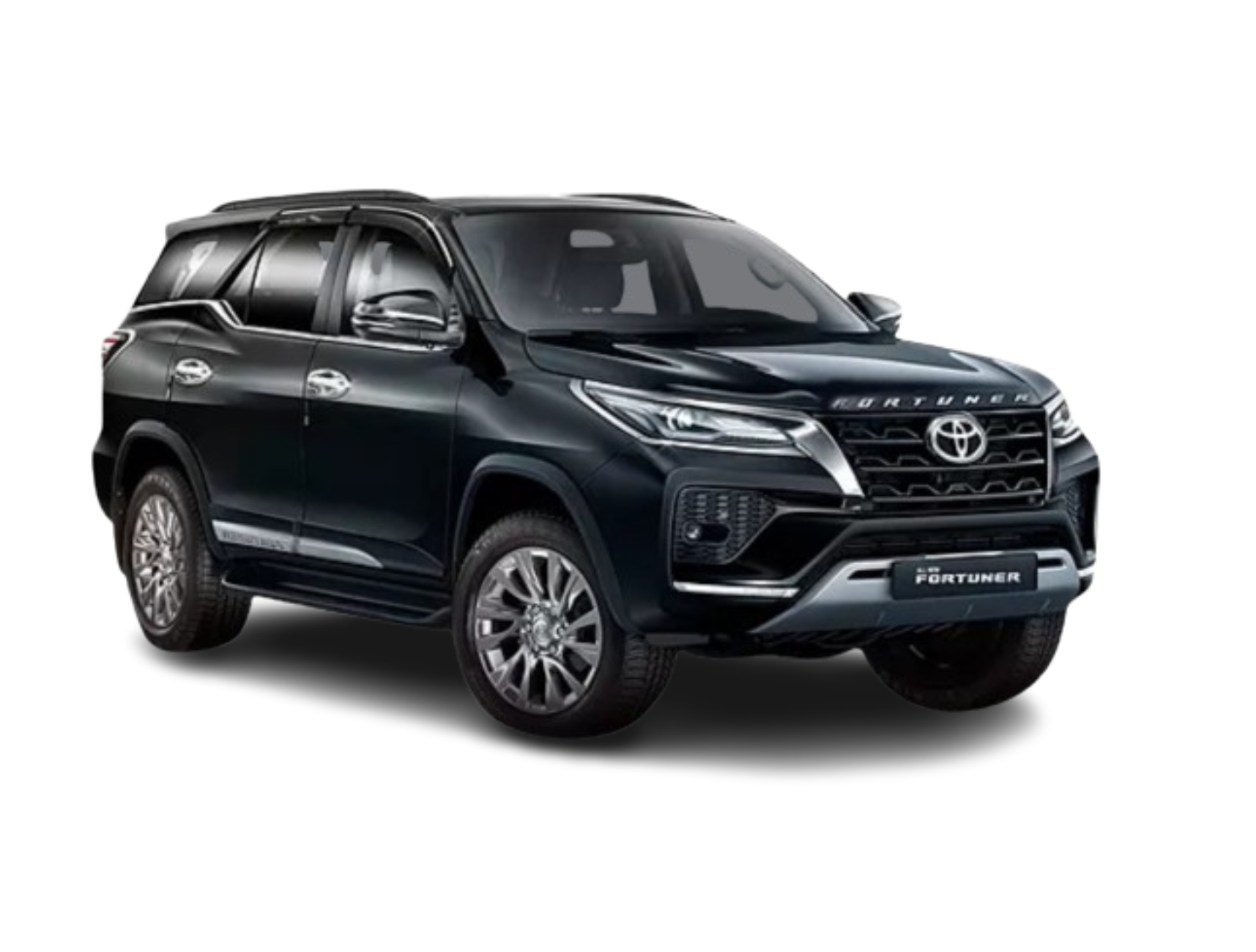 The exterior design of the Fortuner is bold and commanding, featuring a striking front grille, sleek headlights, and a muscular body that exudes confidence. Its elevated stance and substantial ground clearance make it a true off-roading contender, while the stylish alloy wheels and chrome accents add a touch of sophistication.